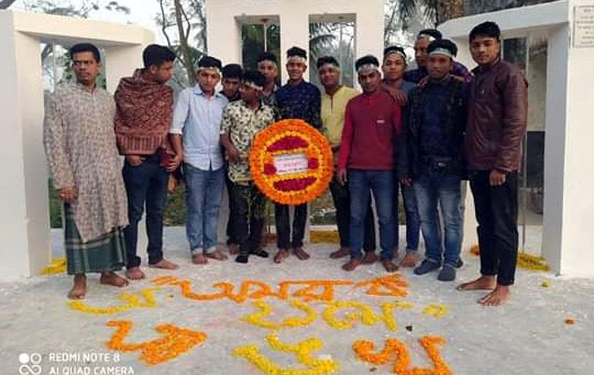 সম্রাট আকবর : প্রভাত ফেরি, শহীদ মিনারে পুস্পস্তবক অর্পণ ও আলোচনা সভার মধ্যে দিয়ে ২১ শে ফেব্রুয়ারী পালন করল বানাবাড়ি তরুন সংঘ। সকাল সাত ঘটিকার সময়ে ক্লাবের সামনে থেকে প্রভাত ফেরির মাধ্যমে ভাদুর উচ্চ বিদ্যালয় শহীদ মিনারে পুস্পস্তবক অর্ণন করেন সংঘের সদস্যরা। তারপর সংক্ষিপ্ত আলোচনা সভায় সভাপতিত্ব করেন সংঘের আহবায়ক আব্দুর রহমান। বক্তব্য প্রদান করেন যুগ্ম আহবায়ক জামির হোসেন জায়েদ, প্রিন্স জহির, পলাশ, সাব্বির, সাইফুল,শাওন। সভা সঞ্চালনা করেন তৌরিদ হাসান দ্বীনু। বক্তারা ২১ শে ফেব্রুয়ারী মহান আন্তর্জাতিক ভাষা দিবসের বিভিন্ন তাৎপর্য তুলে ধরেন ও ভবিষ্যতে এই দিবসটি আরো ব্যাপক ভাবে পালনের আশাবাদ ব্যক্ত করেন। এবার রাত জেগে ভাদুর উচ্চ বিদ্যালয় শহীদ মিনার পরিস্কার ও সাজানোর কাজ করেন সংগঠনের সদস্যরা, এতে সংগঠনের সদস্যদের প্রতি ধন্যবাদ ও কৃতজ্ঞতা প্রকাশ করেন প্রতিষ্ঠানের প্রধান শিক্ষিকা শারমিন সুলতানা। আরো উপস্থিত ছিলেন সালাউদ্দিন, দিদার,মোবারক, ফয়সাল, বাদল, আইয়ুব,আকবর,তামিম,জহির, মুরাদ সহ ক্লাবের অন্যান্য সদস্যবৃন্দ।