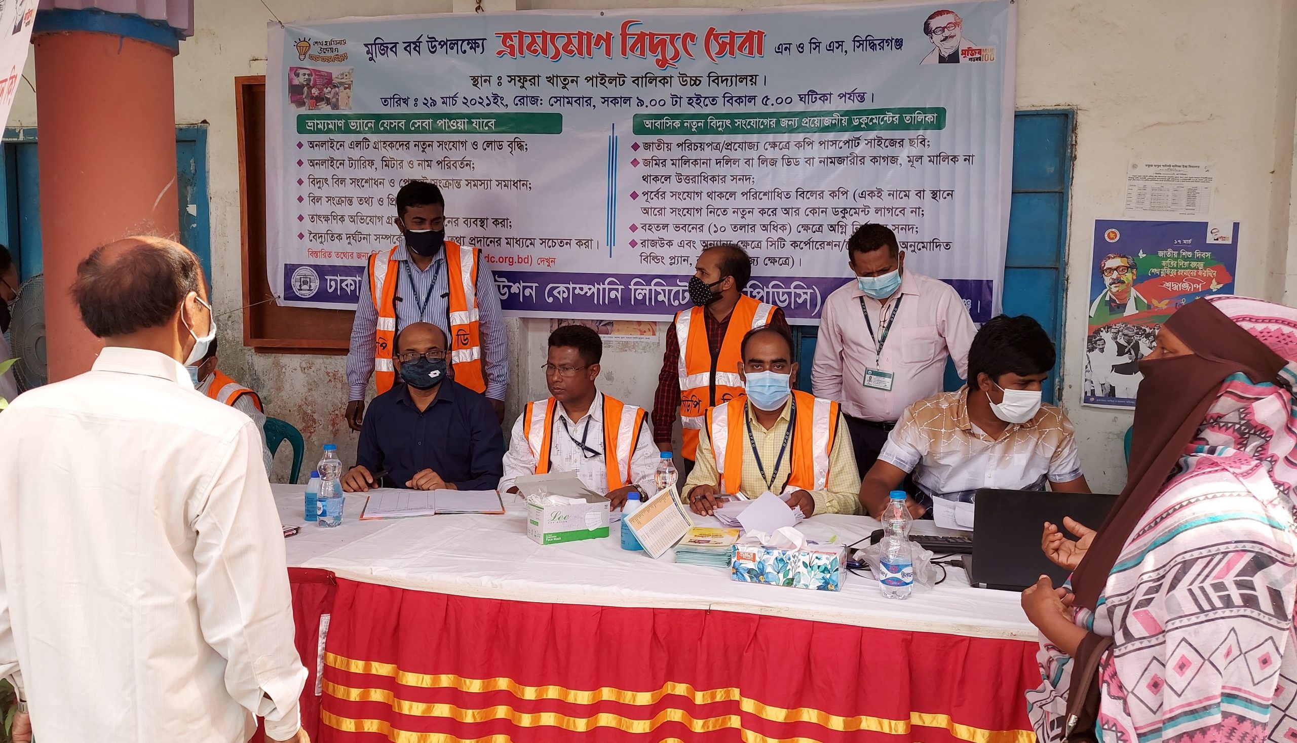 নারায়ণগঞ্জ প্রতিনিধি : নারায়ণগঞ্জের সিদ্ধিরগঞ্জ এনওসিএস, ডিপিডিসির উদ্যোগে মুজিব বর্ষ উপলক্ষ্যে গ্রাহকদের মাঝে ভ্রাম্যমাণ বিদ্যুৎ সেবা প্রদান করা হয়েছে। গত ২৯ মার্চ সোমবার সকাল ৯ ঘটিকার সময় গোদনাইল সফুরা খাতুন বালিকা উচ্চ বিদ্যালয় মাঠে দিন ব্যাপি এ ভ্রাম্যমাণ বিদ্যুৎ সেবা কার্যক্রম অনুষ্ঠিত হয়। অনুষ্ঠানে উপস্থিত ছিলেন, তত্তা¡বধায়ক প্রকৌশলী ডেমরা সার্কেল শ্রীবাস চন্দ্র বিশ্বাস, সিদ্ধিরগঞ্জ ডিপিডিসির নির্বাহী প্রকৌশলী মোস্তাফিজুর রহমান, সহকারী প্রকৌশলী গোলাম কিবরিয়া, মোকসেদ আলম মঞ্জু, উপ-সহকারী প্রকৌশলী এরশাদ উল্যাহ, মেহেদী হাসান সেলিম, শ্রী নন্দ দুলাল সাহা, কমপ্লেইন সুপার ভাইজার আমির হোসেন সেখ, শিমুল ইসলাম, সিদ্ধিরগঞ্জ সিবিএর সভাপতি মোঃ মজিবর রহমান, সাধারন সম্পাদক কামরুল ইসলাম সহ বিদ্যুৎ অফিসের আরো অন্যান্য কর্র্মকর্তা ও কর্মচারীবৃন্দ।