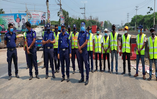 স্টাফ রিপোর্টার : নারায়ণগঞ্জের ঢাকা-চট্টগ্রাম মহাসড়ক মদনপুর এলাকায় কাঁচপুর হাইওয়ে পুলিশ বাঁশ ও অন্যান্য সরঞ্জাম দিয়ে ব্যারিকেড দিয়েছে। চলমান লকডাউন চলাকালীন অবস্থায় রবিবার দুপুরে মদনপুর মহাসড়কটি ব্যারিকেড দেওয়া হয়। হাইওয়ে পুলিশের সদস্যদের বিভিন্ন যানবাহন তল্লাশি করতে দেখা যায়। বিনাপ্রয়োজনে যেসব যানবাহন মহাসড়কে উঠছে তাদের বিরুদ্ধে নেওয়া হচ্ছে আইনগত ব্যবস্থা। লকডাউনের মধ্যে ২০০ টিরও বেশী মামলা করেছে কাঁচপুর হাইওয়ে পুলিশ। থ্রী হুইলার, সিএনজি, মোটরসাইকেল, অটোরিক্সা মহাসড়কে উঠার দায়ে তাদের বিরুদ্ধেও নেওয়া হচ্ছে আইনগত ব্যবস্থা। কাঁচপুর হাইওয়ে পুলিশের গুরুত্বপূর্ন ৩টি স্থানে রয়েছে চেকপোস্ট। চেকপোস্ট গুলো হলো কাঁচপুর চাঁদমহল সিনেমা হলের সামনে, মদনপুর চৌরাস্তা ও মেঘনা টোল প্লাজার সামনে। কাঁচপুর হাইওয়ে থানা অফিসার ইনচার্জ মনিরুজ্জামান বলেন, সরকার সারাদেশে লকডাউন ঘোষনা করেছে। পণ্যবাহী ও ইমার্জেন্সি যানবাহন ছাড়া কোন ধরনের যানবাহন বিনাপ্রয়োজনে মহাসড়কে উঠলে আমরা সেসব যানবাহনের বিরুদ্ধে আইনগত ব্যবস্থা গ্রহন করছি। ইতিমধ্যে বিভিন্ন যানবাহনের বিরুদ্ধে ২০০ টির বেশী মামলা করা হয়েছে এবং ৩ টি পয়েন্টে আমাদের চেকপোস্ট বসানো হয়েছে। লকডাউন কার্যকর করতে কাঁচপুর হাইওয়ে পুলিশ কাউকে ছাড় দিচ্ছেনা। কাঁচপুর হাইওয়ে পুলিশের পাশাপাশি হাইওয়ে কমিউনিটি পুলিশের স্বেচ্ছাসেবীরাও মহাসড়কে লকডাউন কার্যক্রমে সহযোগীতা করছে।