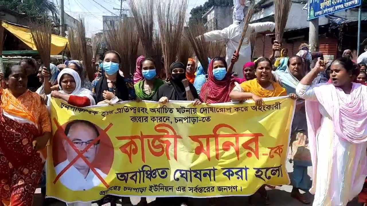 সভায় বক্তারা বলেন, গাজী টায়ার কারখানায় আগুন ও লুটপাটের ঘটনায় চনপাড়া পুনর্বাসন কেন্দ্রের কেউ জড়িত নয়। রাজনৈতিক প্রতিহিংসায় লুটপাটের ঘটনায় আমাদের জড়ানো হচ্ছে। কাজী মনিরুজ্জামানের দেওয়া বক্তব্যের প্রতিবাদে তীব্র নিন্দা জানানো হয়। পরে বিক্ষোভ মিছিল নিয়ে তারা চনপাড়ার প্রধান সড়ক প্রদক্ষিণ শেষে কাজী মুনিরুজ্জামানের কুশপুত্তলিকা দাহ এবং চনপাড়া পুনর্বাসন কেন্দ্রে তাকে অবাঞ্চিত ঘোষণা করেন।