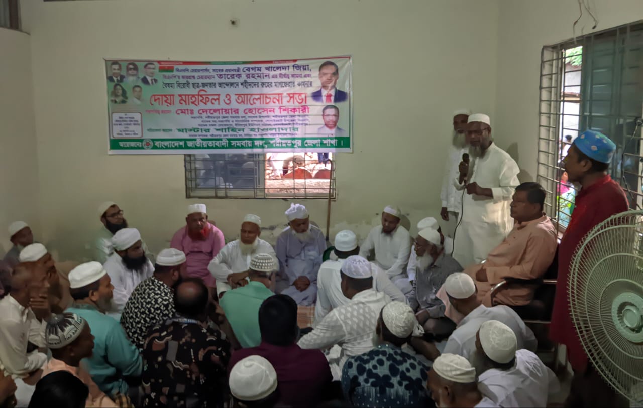 শরীয়তপুরের গোসাইরহাটে বিএনপি চেয়ারপার্সন, সাবেক প্রধানমন্ত্রী বেগম খালেদা জিয়া, বিএনপির ভারপ্রাপ্ত চেয়ারম্যান তারেক রহমান এর দীর্ঘায়ু কামনা এবং বৈষম্য বিরোধী ছাত্র-জনতার আন্দোলনে শহীদদের রুহের মাগফেরাত কামনায় দোয়া মাহফিল ও আলোচনা সভা অনুষ্ঠিত হয়েছে।