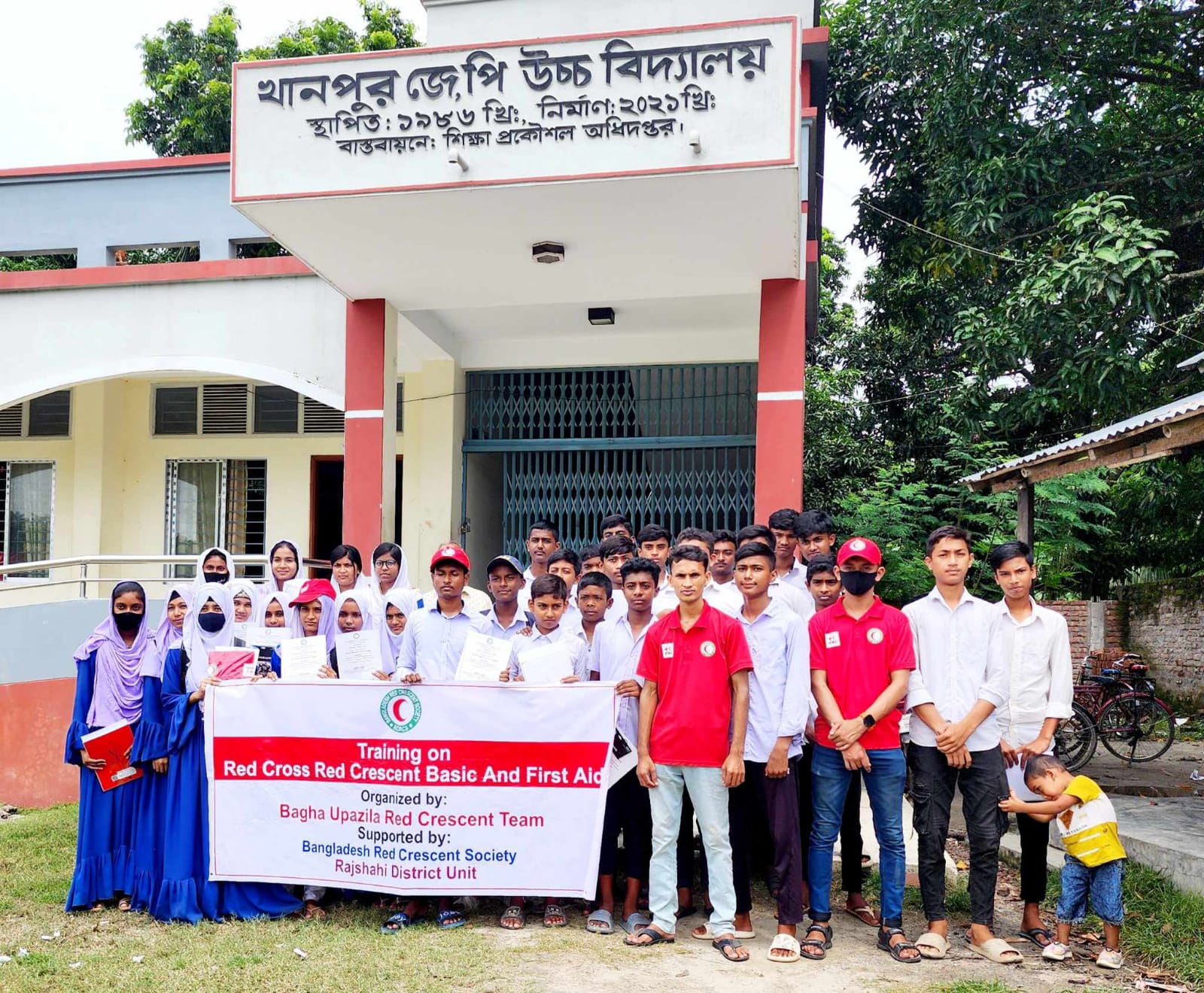 রাজশাহীর বাঘায় তিন দিন ব্যাপী বাংলাদেশের রেড ক্রিসেন্ট সোসাইটির উদ্যোগে প্রাথমিক চিকিৎসা ও সহশিক্ষা কার্যক্রম অনুষ্ঠিত হয়েছে। উপজেলার খানপুর জে.পি উচ্চ বিদ্যালয়ে মঙ্গলবার ৩ সেপ্টেম্বর শুরু হয়ে শেষ হয়েছে বৃহস্পতিবার ৫ সেপ্টেম্বর। তিনদিন ব্যাপী বাংলাদেশের রেড ক্রিসেন্ট সোসাইটির বাঘা উপজেলা টিমের উদ্যাগে রাজশাহী জেলা ইউনিট কর্তৃক আয়োজিত প্রাথমিক চিকিৎসা ও সহশিক্ষা কার্যক্রম অনুষ্ঠিত হয়।