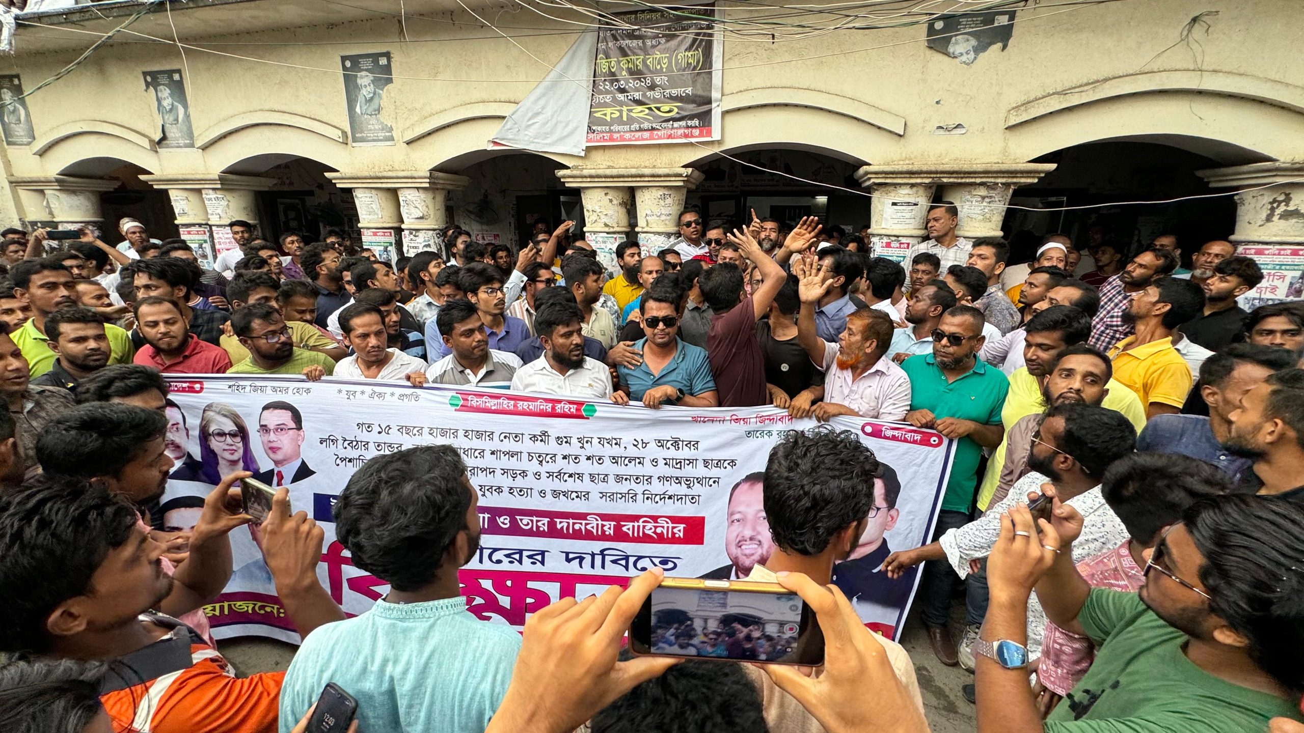 বুধবার দুপুরে শহরের বিসিক এলাকা থেকে শোক র্যা লীটি বের হয়। রযান লীটি শহরের বিভিন্ন সড়ক প্রদক্ষিণ করে। পরে হাজার-হাজার মানুষকে হত্যা ও জখমের সরাসরি নের্দেশদাতা স্বৈরাচারী হাসিনাসহ তার দানবীয় বাহিনীর বিচারের দাবতি শহরের পুরাতন লঞ্চঘাট এলাকা থেকে একটি বিক্ষোভ মিছিল বের করে জেলা যুব দল। বিক্ষোভ মিছিলটি বিভিন্ন সড়ক প্রদক্ষিণ শেষে জেলা বার কাউন্সিলের সামনে গিয়ে শেষ হয়। সেখানে এক বিক্ষোভ সমাবেশ অনুষ্ঠিত হয়। বিক্ষোভ সমাবেশে বক্তরা শেখ হাসিনাকে দ্রুত দেশে ফিরিয়ে এনে সকল হত্যাকান্ড ও অপকর্মের শাস্তির দাবী জানান। শোক র্যা লী ও বিক্ষোভ মিছিলে বিএনপি ও তার সহযোগি সকল সংগঠনের শত শত নেতা-কর্মী অংশ নেন।