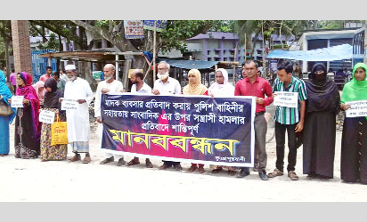 ভূঞাপুরে সাংবাদিকের ওপর হামলার প্রতিবাদে মানববন্ধন