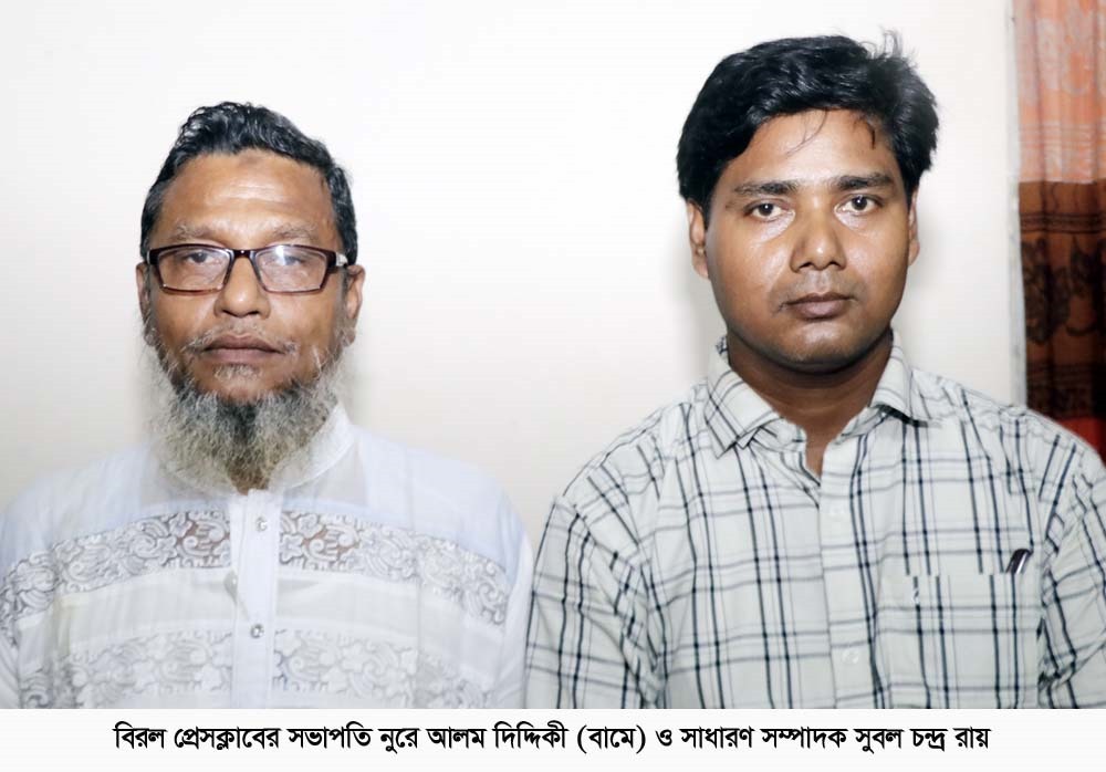 দিনাজপুরের বিরল প্রেসক্লাবের নতুন কমিটি গঠিত হয়েছে। সরাসরি ভোটে সভাপতি নির্বাচিত হয়েছেন নূরে আলম সিদ্দিকী (দৈনিক ভোরের ডাক, আজকের দেশবার্তা) ও সাধারণ সম্পাদক নির্বাচিত হয়েছেন সুবল চন্দ্র রায় (আজকের পত্রিকা ও দৈনিক তিস্তা)।শনিবার বিকেলে বিরল প্রেসক্লাব ভবনে সকল সদস্যদের উপস্থিতিতে প্রেসক্লাবের স্থবির হয়ে থাকা সংস্কার কাজ এবং সাংগঠনিক কাঠামো নতুন করার লক্ষে পুর্বের কমিটি বিলুপ্ত করা হয়। এসময় বিরল প্রেসক্লাবের প্রবীণ সাংবাদিক নূরে আলম সিদ্দিকীর সঞ্চালনায় দীর্ঘ মতবিনিময় শেষে নতুন কমিটির গঠন প্রক্রিয়া সুন্দর ভাবে শেষ হয়।