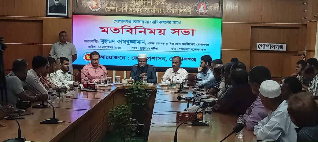 গোপালগঞ্জ জেলা প্রশাসনের আয়োজনে শনিবার (১৪ সেপ্টেম্বর) দুপুর ১২ টায় জেলা প্রশাসকের সম্মেলন কক্ষ "স্বচ্ছতা'য় গোপালগঞ্জ জেলায় কর্মরত সাংবাদিকদের সাথে এক মতবিনিময় সভায় সভাপতিত্বের বক্তব্যে এসব কথা বলেন তিনি।