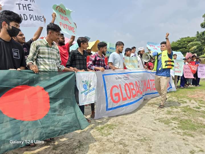 শুক্রবার ২০ সেপ্টেম্বর, সকাল ১১ ঘটিকায় শ্যামনগর উপজেলাধীন ঈশ্বরীপুর এ সোবহান মাধ্যমিক বিদ্যালয়ের সম্মুখে গ্লোবাল প্লাটফর্ম বাংলাদেশের সহযোগিতায় ও যুব সংগঠন, শরুব ইয়ুথ টিমের সহযোগীতায় শতাধিক যুবদের অংশগ্রহণে অবরোধ কর্মসূচি সফল করতে তরুণ জলবায়ু কর্মীরা একত্রিত হয়। পরে তাররুনরা দল মত নির্বিশেষে সমাজের বিভিন্ন প্রান্তের মানুষদের সাথে নিয়ে,জলবায়ু অর্থায়ন নিশ্চিত করা সহ, জলবায়ু সংকট নিরসন,ন্যায়বিচার, ও জীবাশ্ম জ্বালানি বিনিয়োগ বন্ধে সহ জলবায়ু সুবিচারের দাবি দাওয়া সম্বলিত প্লাকার্ড নিয়ে অবস্থান করে।