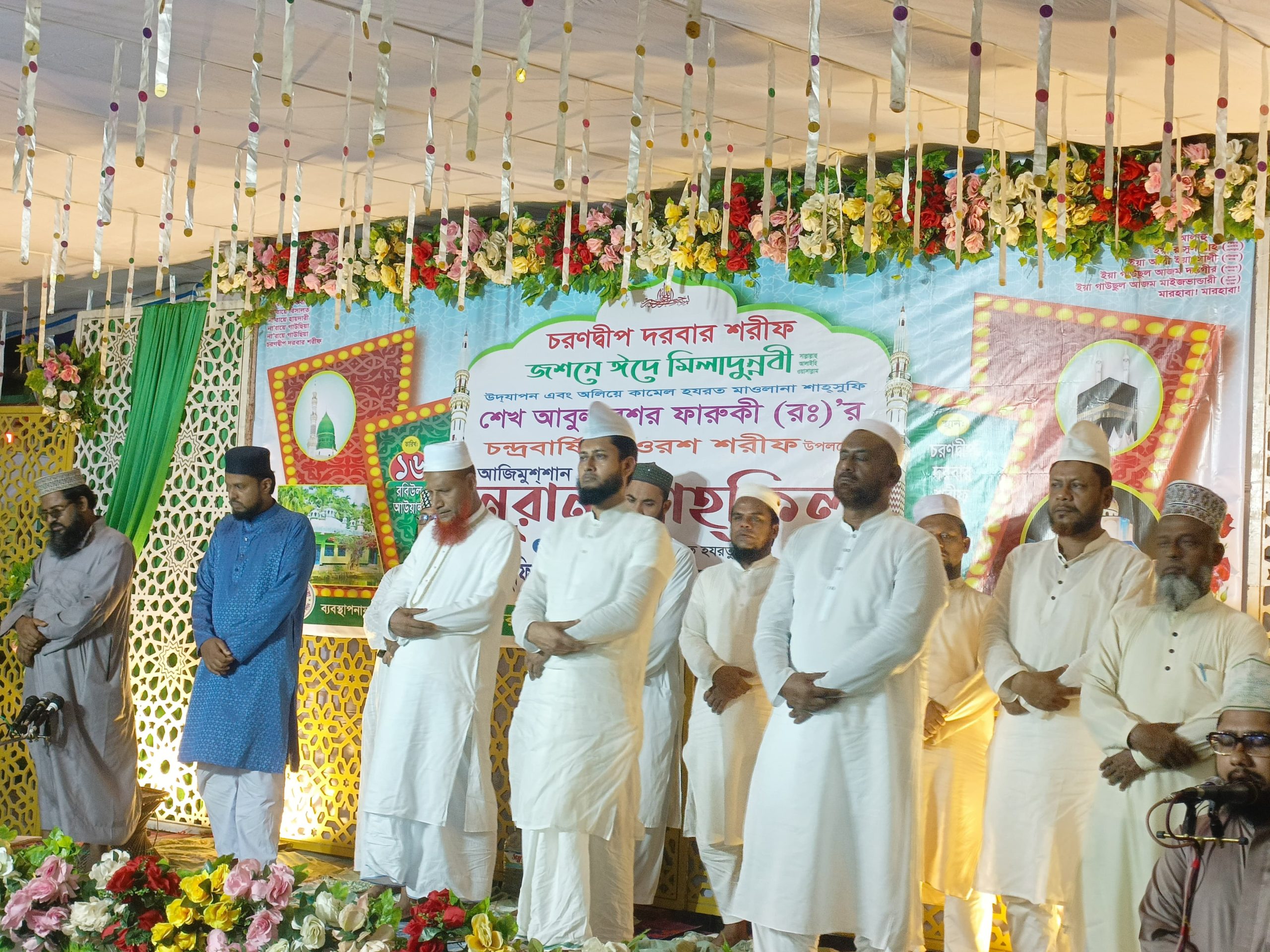 খাদেমানে গাউছিয়া চরণদ্বীপ দরবার শরীফ স্বেচ্ছাসেবক সংগঠনের উদ্যােগে বোয়ালখালীর ঐতিহ্যবাহী চরণদ্বীপ দরবার শরীফে ৪৫ তম পবিত্র ঈদে মিলাদুন্নবী (দ.) ও গাউছে জামান হযরত মাওলানা শাহসূফী শেখ আবুল বশর ফারুকী (র.) এর চন্দ্রবার্ষিক ওরশ শরীফ উপলক্ষে এক আজিমুশ্বান মিলাদ মাহফিল গতকাল ১৬ই রবিউল আওয়াল, ২০শে সেপ্টেম্বর অনুষ্ঠিত হয়েছে। মাহফিলে সদারত ও আখেরি মুনাজাত পরিচালনা করেন চরণদ্বীপ দরবার শরীফের সাজ্জাদানশীন পীরে ত্বরিকত হযরতুলহাজ্ব শাহসূফী শেখ আবু মুহাম্মদ শহীদুল্লাহ ফারুকী (ম.)। উক্ত মাহফিলে উপস্থিত ছিলেন আওলাদে চরণদ্বীপি (ক.) শাহজাদা আল্লামা শেখ আবু মুহাম্মদ সাইফুল্লাহ ফারুকী (ম.) ও শাহজাদা শেখ আবু মুহাম্মদ সানাউল্লাহ ফারুকী (ম.)। মাহফিলে আলোচনা পেশ করেন হযরতুলহাজ্ব আল্লামা শায়েস্তা খান আজহারী, আল্লামা বাকী বিল্লাহ আজহারী, ডক্টর আল্লামা নুরুন্নবী আজহারী, আল্লামা ওমর ফারুক নঈমী, হাফেজ মাওলানা রবিউল ইসলাম ও বিশিষ্ট ব্যবসায়ী আলহাজ্ব মুহাম্মদ সৈয়দুল হক খান। মাহফিলে গাউসিয়া আহমদিয়া রহমানিয়া সংসদ কেন্দ্রীয় কমিটির সম্মানিত নেতৃবৃন্দসহ আরো অনেক গণ্যমান্য ব্যাক্তিবর্গ ও প্রখ্যাত ওলামায়ে কেরামগন উপস্থিত ছিলেন।