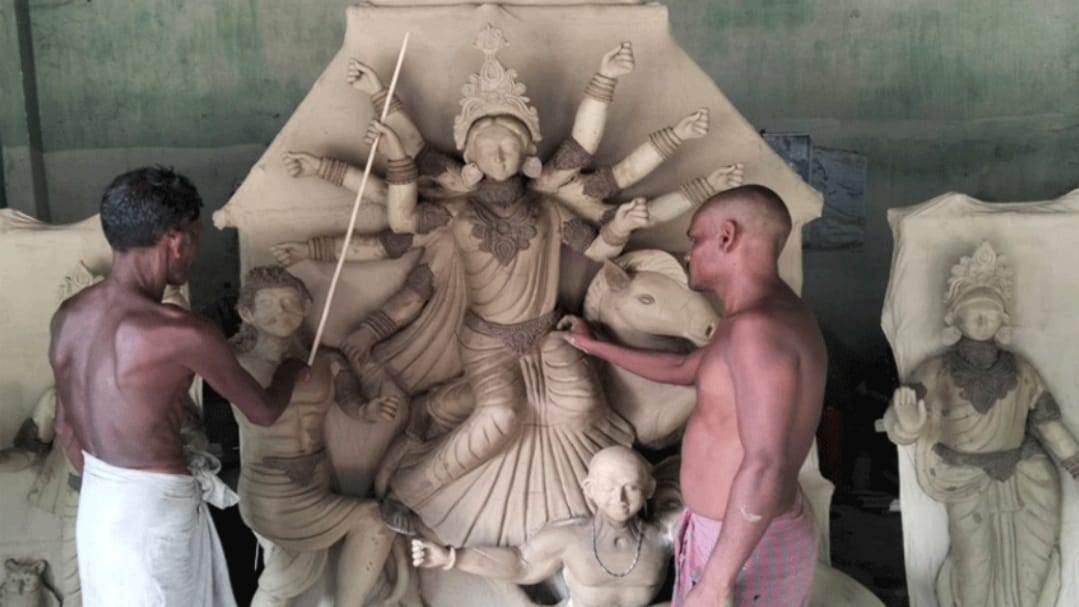 আসছে সনাতন ধর্মাবলম্বীদের বৃহৎ ধর্মীয় উৎসব শারদীয় দুর্গাপূজা। উৎসবকে সামনে রেখে চলছে ব্যাপক প্রস্তুতি। ব্যস্ততা বেড়েছে মৃৎশিল্পী কারিগরদের। বাংলাদেশের বিভিন্ন জেলা উপজেলার পূজামণ্ডপ ঘুরে দেখা গেছে, দম ফেলার সময় নেই মৃৎশিল্পীদের। সু-নিপুণ হাতে মাটি ও রংতুলির ছোঁয়ায় দেবীকে রাঙিয়ে তুলতে ব্যস্ত সময় পার করেছে শিল্পীরা। কাদামাটি, বাঁশ, খড়, সুতলি দিয়ে শৈল্পিক ছোঁয়ায় তিল তিল করে গড়ে তোলা হচ্ছে সনাতনধর্মাবলম্বী ভাই বোনদের দেবীদুর্গার প্রতিমা। সকাল থেকে রাত পর্যন্ত কেউ কাদা তৈরি করছেন, কেউ কাদা থেকে দেবী হাত ও পায়ের রূপ দিচ্ছেন। মাটি দিয়েই সুনিপুণ হাতে দেবীর জন্য তৈরী হচ্ছে অলঙ্কারতুল্য কারুকাজ।