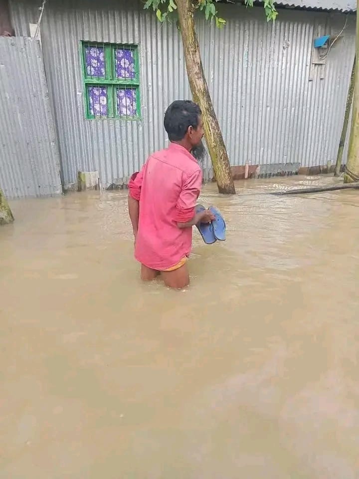 একই গ্রামের আব্দুর রশিদ ছোট বলেন, গ্রামের প্রতিটি বাড়িতে হাটু পানি। বাচ্চা বৃদ্ধদের নিয়ে নিদারুণ কষ্টে পড়েছি। শুকনো খাবার প্রয়োজন হলেও এখন পর্যন্ত আসেনি। এবারের বন্যায় তেমন কেউ খবর নিতেও আসেনি।