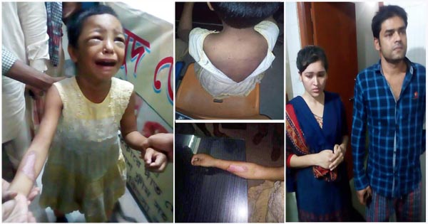 তখন শিশুটিকে জিজ্ঞাস করলে সে জানায়, তাকে কারনে অকারনে কাজে ভূল ধরে খুন্তি গরম করে হাতে ও শরীরে ছ্যাকা দিতো। কথায় কথায় মারধর করতো। ২০/২৫দিন আগে তার হাতে গরম খুন্তি দিয়ে ছ্যাকা দেয়ায় তার ডান হাতের চামড়া উঠে যায়। শুক্রবারও সেই ক্ষত হাতে ছ্যাকা দেয়া হয়।