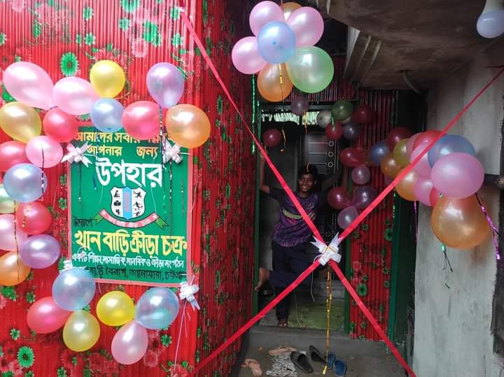 গত ২ বছর ধরে মানুষের দুয়ারে দেুয়ারে ঘুরেও একটি ঘর তৈরি করে দেওয়ার কোনো আশ্বাস পাননি তিনি। হঠাৎ খান বাড়ি ক্রীড়া চক্রের সদস্যরা মানুষ থেকে শুনতে পান তার চোখের সমস্যা, তাকে দেখতে গিয়ে সদস্যরা দেখে ঘরের অবস্থা ভালো নয়, বৃষ্টির পানির জন্য ঘুমাতে পারে না। এই ঘরে আর থাকা সম্ভব নয়। অতপর খান বাড়ি ক্রীড়া চক্রের সদস্যরা একটি ঘর তৈরি করে দেওয়ার উদ্যোগ নিল।
