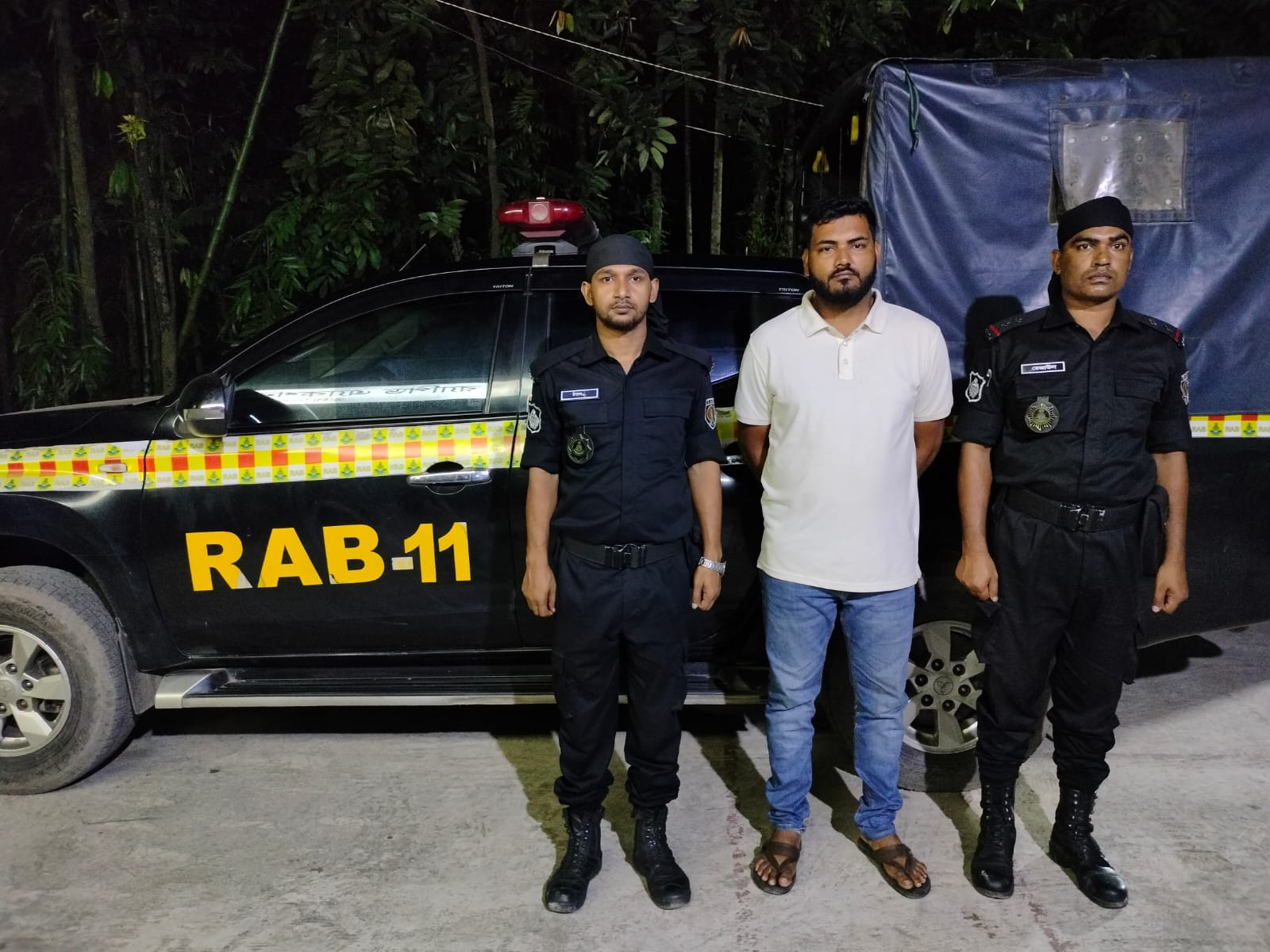মঙ্গলবার (৮ অক্টোবর) ভোর রাতের দিকে এক প্রেস বিজ্ঞপ্তিতে এসব তথ্য নিশ্চিত করেন র্যাব-১১, সিপিসি-৩ নোয়াখালীর কোম্পানি কমান্ডার (ভারপ্রাপ্ত) সহকারী পুলিশ সুপার মো. গোলাম মোর্শেদ। এর আগে, মঙ্গলবার দিবাগত রাত দেড়টায় উপজেলার রসুলপুর থেকে তাকে গ্রেপ্তার করা হয়।