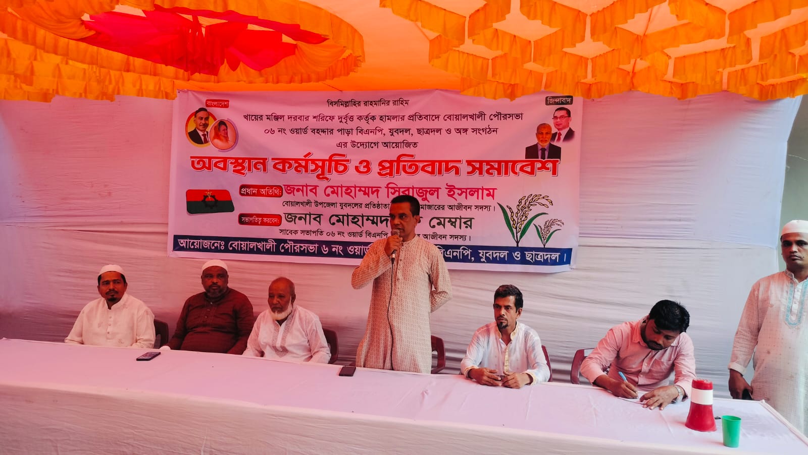 পৌরসভা যুবদল নেতা আবদুল মান্নান সঞ্চালনায় বিশেষ অতিথির বক্তব্য রাখেন, ৬নং ওয়ার্ড বিএনপির সাংগঠনিক সম্পাদক মো. জসিম উদ্দিন, বিশেষ অতিথি ছিলেন পৌরসভা বিএনপি নেতা মো. জহুর মিয়া, বিএনপি নেতা মো. আবুল বশর। অন্যান্যদের মাঝে বক্তব্য রাখেন, যুবদল নেতা মো. টিপু সুলতান, কলেজ ছাত্রদল নেতা মো. ইকবাল হোসেন এবং বহদ্দারপাড়া ওয়ার্ড বিএনপি, যুবদল, ছাত্রদল ও অঙ্গ সংগঠনের নেতাকর্মীরা।