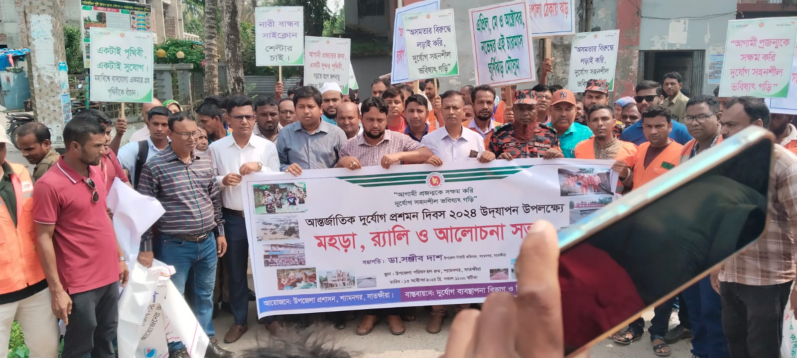 “আগামী প্রজন্মকে সক্ষম করি, দুর্যোগ সহনশীল ভবিষ্যৎ গড়ি” এই প্রতিপাদ্যকে সামনে নিয়ে সাতক্ষীরার শ্যামনগর উপজেলা প্রশাসনের আয়োজনে আন্তর্জাতিক দুর্যোগ প্রশমন দিবস উপলক্ষে মহড়া, র্যালী ও আলোচনাসভা অনুষ্ঠিত হয়।