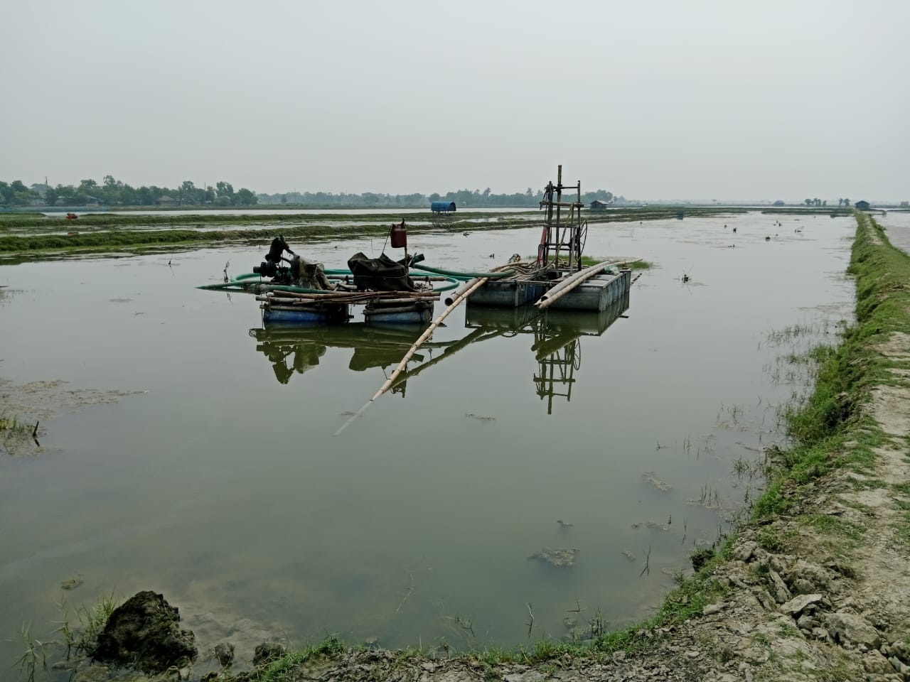 শ্যামনগর উপজেলার ৪নং নুরনগর ইউনিয়নের হাজিপুর রোডের বরফ ডাঙ্গা থেকে নুরনগর বাজার রোড পর্যন্ত আড়াই কিলোমিটার রাস্তার আলী গাজীর মৎস্য ঘের থেকে ড্রেজার মেশিনে অবৈধভাবে বালু ও কাদা উত্তোলন করে রাস্তায় দিচ্ছে ঠিকাদার আব্দুল হাকিম।