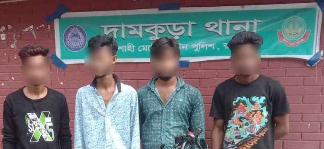 গ্রেপ্তারকৃত আসামিরা হলেন মো: বিশাল (২০), মো: তানজীম আহমেদ (২০), মো: নাঈম হোসেন (২০) ও মো: সাঈদ হাসান শান্ত (২১)। বিশাল রাজশাহী মহানগরীর কাশিয়াডাঙ্গা থানার হড়গ্রাম নতুনপাড়ার মো: রানার ছেলে, তানজীম একই থানার গোলজারবাগ গুড়িপাড়ার মো: ইলিয়াসের ছেলে, নাঈম হড়গ্রাম নতুনপাড়ার মো: রবিউল ইসলামের ছেলে, সাঈদ একই এলাকার মো: টুটুল শেখের ছেলে।