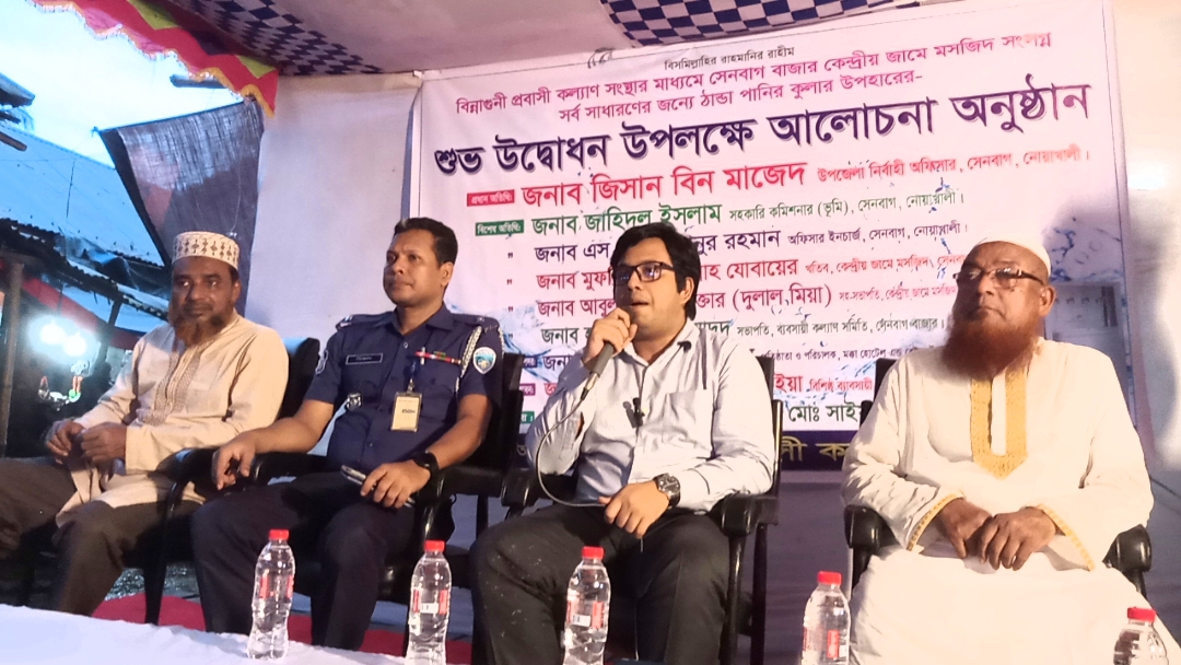 সেনবাগ বাজার কেন্দ্রীয় জামে মসজিদ সংলগ্ন সর্ব সাধারণের জন্য ঠান্ডা পানির কুলার উপহারের শুভ উদ্বোধন উপলক্ষে আলোচনা অনুষ্ঠান অনুষ্ঠিত হয়েছে।