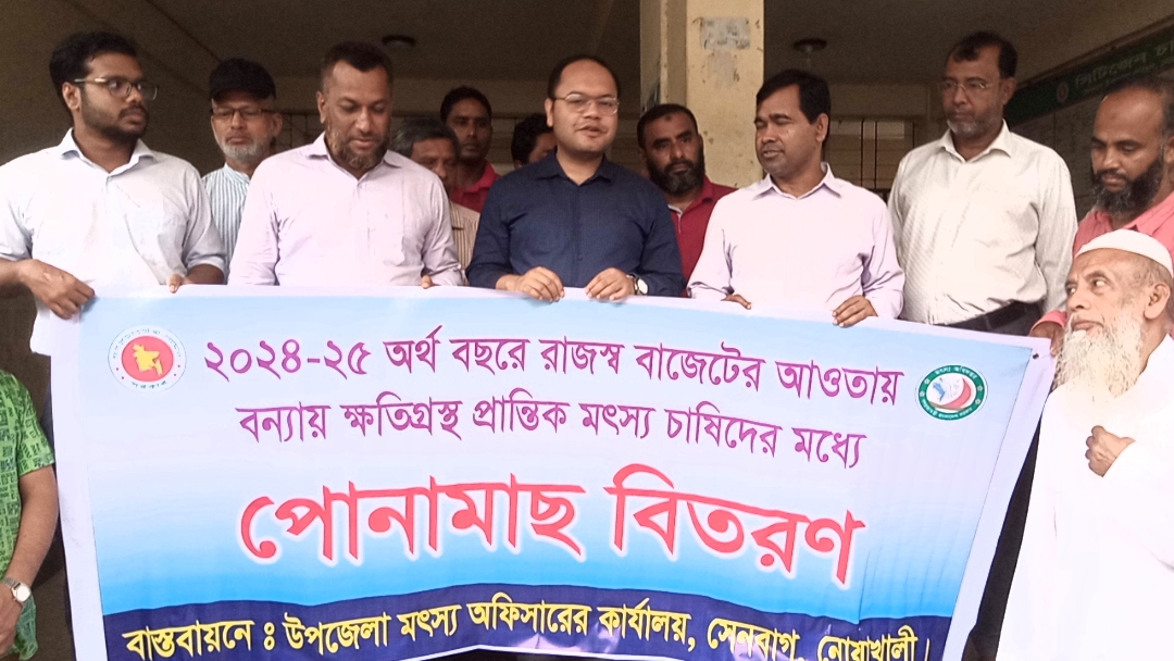 নোয়াখালীর সেনবাগে ২০২৪-২০২৫ অর্থ বছরে রাজস্ব বাজেটের আওতায় বন্যায় ক্ষতিগ্রস্হ প্রান্তিক মৎস্য চাষীদের মধ্যে পোনামাছ বিতরণ করা হয়।