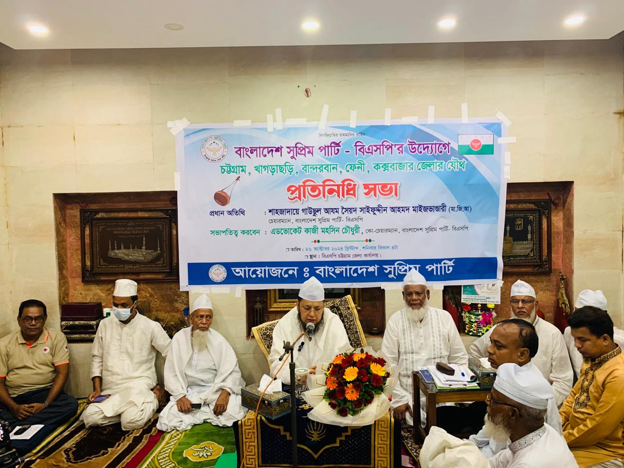 বাংলাদেশ সুপ্রিম পার্টি (বিএসপি) চেয়ারম্যান শাহসুফি শাহ্জাদা সৈয়দ সাইফুদ্দীন আহমদ মাইজভাণ্ডারী বলেছেন, বর্তমান সরকার ছাত্র জনতার গণঅভ্যূত্থানের সরকার, ফলে স্বৈরাচারের বিধায়ের পর অন্তর্বর্তীকালীন সরকারের কাছে জনগণের প্রত্যাশা অনেক বেশি। বর্তমানে নিত্যপ্রয়োজনীয় জিনিসপত্রের দাম সাধারণ মানুষের ক্রয়সীমার বাহিরে। দ্রব্যমূল্যের উর্ধ্বগতিতে জনগণ দিশেহারা। সাধারণ মানুষের জীবনযাপনে খুবই কষ্ট হচ্ছে। বাজার সিন্ডিকেট নিয়ন্ত্রনে এনে নিত্য প্রয়োজনীয় জিনিসপত্রের দাম কমতে না পারলে অন্তর্বর্তীকালীন সরকার জনগণের সমর্থন হারাবে।