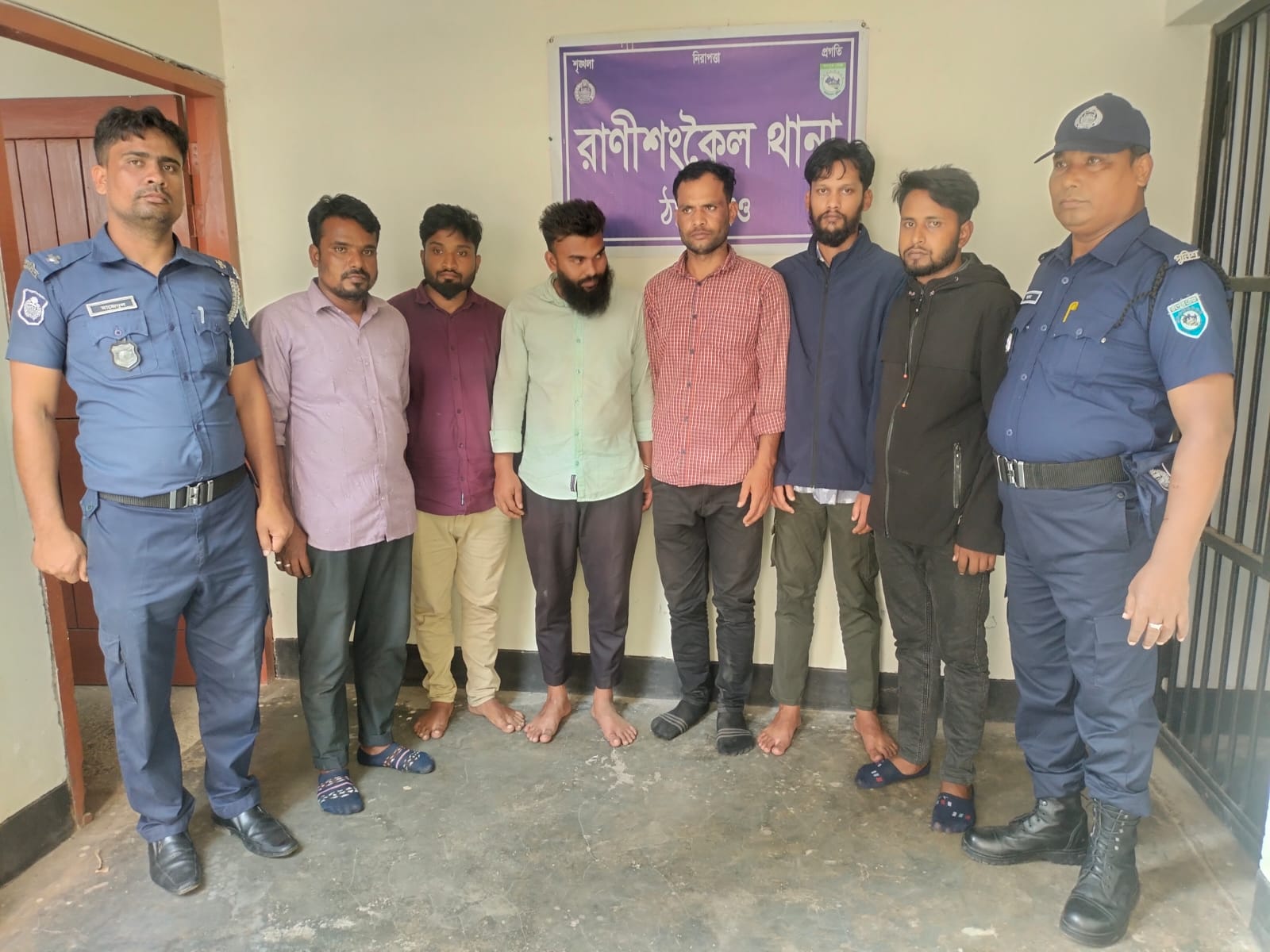গ্রেফতারকৃত ৬ জন আসামির হলেন -- ঠাকুরগাঁও সদর উপজেলার ভুলিল থানার আউলিয়াপুর ইউনিয়নের ভাতগাঁও গ্রামের মোঃ হোসেন আলীর ছেলে মোঃ জাহিদুর রহমান ওরফে জাহিদ (২৫), ঠাকুরগাঁও সদর উপজেলার ভুলিল থানার আউলিয়াপুর ইউনিয়নের ঢোলকালী গ্রামের হামিদুল হকের ছেলে মোঃ আঃ রাজ্জাক (২৬) , ঠাকুরগাঁও সদর উপজেলার সালন্দর ইউনিয়নের দেওগাও গ্রামের আব্বাস আলীর ছেলে মোঃ জাফর আলী (৩১), ঠাকুরগাঁও পৌরসভার ঘোষপাড়া গ্রামের মৃত আনিছুর রহমানের ছেলে মোঃ শুভ (২৫), ঠাকুরগাঁও সদর উপজেলার ৪ নং - ঝাড়গাও ইউনিয়নের আরাজি কেশব বাড়ি গ্রামের মৃত হাফিজ উদ্দিন এর ছেলে
