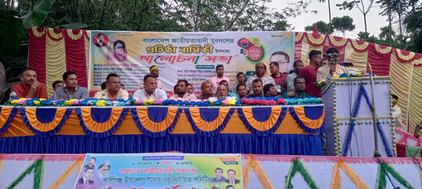 কালিগঞ্জের বিষ্ণুপুরে অনুষ্ঠিত হয়েছে জাতীয়তাবাদী যুবদলের প্রতিষ্ঠা বার্ষিকী উপলক্ষে র্যালী, আলোচনা সভা, কেককাটা ও দোয়া মোনাজাত।শুক্রবার (১ নভেম্বর-২৪) বিষ্ণুপুর ইউনিয়নের চৌমুহনী প্রাইমারী স্কুল মাঠে বিকেলে ইউনিয়ন যুবদলের আহবায়ক শেখ আব্দুল করিম এর সভাপতিত্বে প্রধান অতিথির বক্তব্য রাখেন উপজেলা যুবদলের আহবায়ক শেখ আলাউদ্দিন সোহেল। প্রধান বক্তার বক্তব্য রাখেন উপজেলা যুবদলের সদস্য সচিব শেখ আব্দুল আজিজ, বিশেষ অতিথির বক্তব্য রাখেন উপজেলা যুবদলের সিনিয়র যুগ্ম আহবায়ক প্রভাষক সাইফুল ইসলাম, যুগ্ম আহবায়ক জিএম রবিউল্লাহ বাহার, যুগ্ম আহবায়ক কাজী রাব্বি হোসেন। সন্মানিত অতিথির বক্তব্য রাখেন কালিগঞ্জ উপজেলা বিএনপির যুগ্ম আহবায়ক মাষ্টার আহছানউল্লাহ তরফদার, যুগ্ম আহবায়ক ও ইউপি চেয়ারম্যান জাহাঙ্গীর আলম, বিষ্ণুপুর ইউনিয়ন বিএনপির আহবায়ক জিএম রফিকুল ইসলাম, সিনিয়র যুগ্ম আহবায়ক এম হাফিজুর রহমান শিমুল, সদস্য সচিব আজিজুর রহমান। ইউনিয়ন যুবদলের সিনিয়র যুগ্ম আহবায়ক মোহাসীন রেজা মুন্না ও সদস্য সচিব শিমুল হোসেন এর পরিচালনায় শুভেচ্ছা বক্তব্য রাখেন চাম্পাফুল ইউনিয়ন বিএনপির নেতা সাইলুজ্জামান সাইলু, উপজেলা তরুণ দলের সভাপতি সুলতান মাহমুদ, সাধারণ সম্পাদক আলতাপ হোসেন, সাংগঠনিক সম্পাদক আশরাফুল ইসলাম, খুলনা মহানগর ছাত্রদলের নেতা জাফর ইকবাল বাবু, ইউনিয়ন স্বেচ্ছাসেবক দলের যুগ্ম আহবায়ক সাইফুল ইসলাম মিন্টু ও যুবনেতা ফিরোজ হোসেন প্রমুখ। এ অনুষ্ঠানে উপস্থিত ছিলেন উপজেলা, বিভিন্ন ইউনিয়ন বিএনপি, যুবদল, স্বেচ্ছাসেবক দল, ছাত্রদল, তরুণদলসহ অঙ্গ সহযোগী সংগঠনের নেতাকর্মী। পরে সদ্য ঘোষিত উপজেলা তরুণ দলের নেতাকর্মীদের ফুলেল শুভেচছা জানিয়ে সংবর্ধনা দেওয়া হয়। এছাড়া কেক কেটে যুবদলের ৪৬তম প্রতিষ্ঠা বার্ষিকী পালন করা হয়।