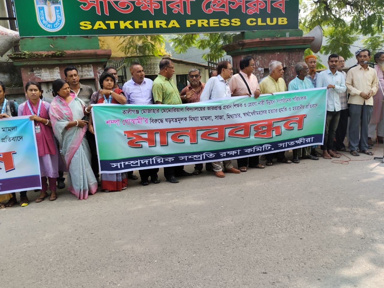 সাম্প্রদায়িক সম্প্রীতি রক্ষা কমিটির আয়োজনে আজ মঙ্গলবার বেলা সাড়ে ১১টায় সাতক্ষীরা প্রেসক্লাবের সামনে উক্ত মানববন্ধন অনুষ্ঠিত হয়।