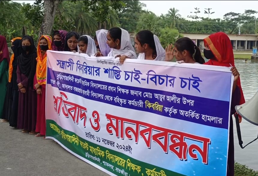 শ্যামনগর উপকূলীয় এলাকায় চিংড়ি ঘেরের বিরোধ নিয়ে জমির মালিক পক্ষের মানববন্ধন ও বিক্ষোভ সমাবেশ অনুষ্ঠিত হয়েছে।