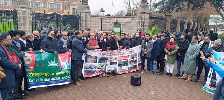 সর্ব ইউরোপিয়ান আওয়ামী লীগের উদ্যোগে এবং নেদারল্যান্ডস আওয়ামী লীগের আয়োজনে সোমবার (২৫ নভেম্বর ২০২৪) দুপুরে হেগে আন্তর্জাতিক ন্যায়বিচার আদালতের সামনে এক প্রতিবাদ ও বিক্ষোভ সমাবেশ অনুষ্ঠিত হয়।