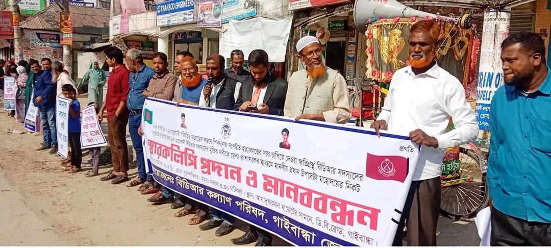 পিলখানায় হত্যাকাণ্ডের দায় চাপিয়ে দেওয়া ক্ষতিগ্রস্ত বিডিআর সদস্যদের চাকুরীতে পুর্ণবহাল ও কারাবন্দীদের মুক্তিসহ ৯ দফা দাবিতে বুধবার গাইবান্ধা ডিবি রোড গানাসার্স মার্কেটের সামনে এক মানববন্ধন কর্মসূচি পালন করা হয়। বিডিআর কল্যাণ পরিষদ গাইবান্ধা জেলা এই মানববন্ধন কর্মসূচি পালন করে।