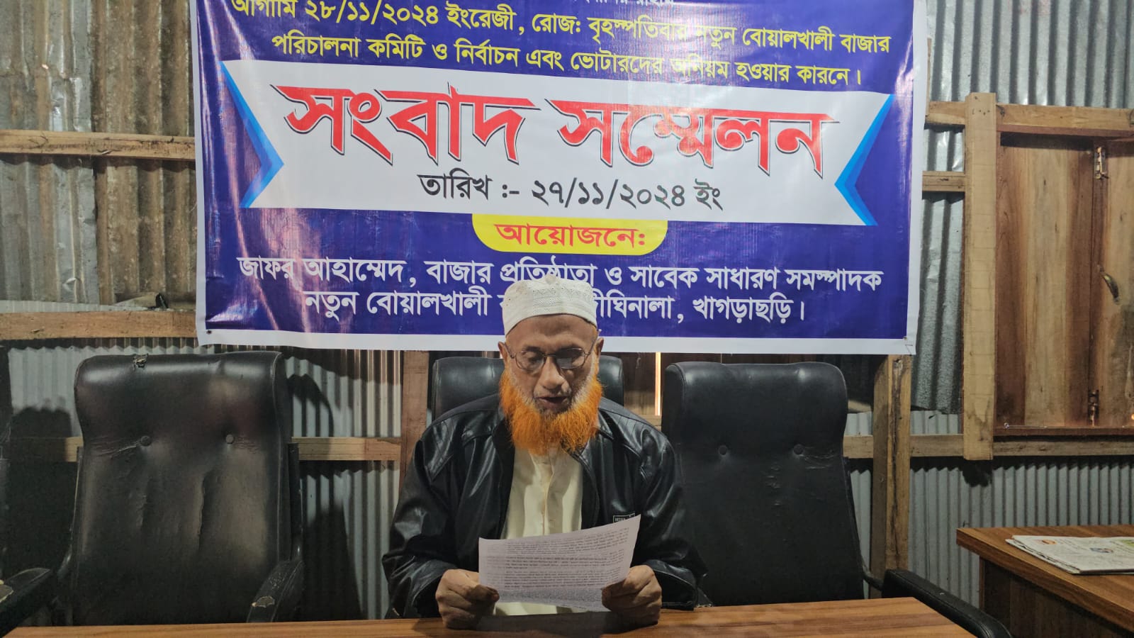 এসময় আরো দাবী করে বলা হয়, জসিম বাজার পুরো দখল করার জন্য আমাকে অনেকগুলো মিথ্যা মামলা দিয়ে এলাকা ছাড়া করে। আমার তৈরী করা বাজারের মাঠ দেখে জসিমের মাথা খারাপ হয়ে যায়। বাজার ফান্ড থেকে নামে বেনামে অন্যায়ভাবে বরাদ্দ নেয়। আওয়ামী লীগের দুঃশাসনে আমি দীঘিনালা এলাকায় না থাকায় বাজার ফান্ডে আমার নামে কোন প্লট নাই। তবে আমি ২০২৩ সনে একটি ৭৫ নং প্লট কিনেছিলাম। আমি আঞ্চলিক দলিল দাখিল করেছিলাম। এই রকম আঞ্চলিক দলিলে অনেকে ভোটার হয়েছেন তাহা সুষ্ঠু তদন্ত করলেই বের হয়ে যাবে। দীর্ঘ ১৩টি বৎসর যেই বাজারের জন্য অমানবিক পরিশ্রম করলাম যার প্রমাণ দীঘিনালা আপামর জনগণ স্বাক্ষী আছেন। আমার কথাগুলো যদি সত্য হয় সকলের বিবেকের কাছে আমার প্রশ্ন বোয়ালখালী নতুন বাজারের এই আনন্দঘন নির্বাচনে সাথী হতে পারি না? এমতাবস্থায়, উক্ত নির্বাচন স্থগিত করে নতুন ভোটার প্রণয়ন তথা পুনরায় তফসীল ঘোষণা করে পুন:নির্বাচন দেওয়ার ব্যবস্থা গ্রহণ করার জন্য আপনাদের সকলের নিকট সহযোগিতা কামনা করছি।