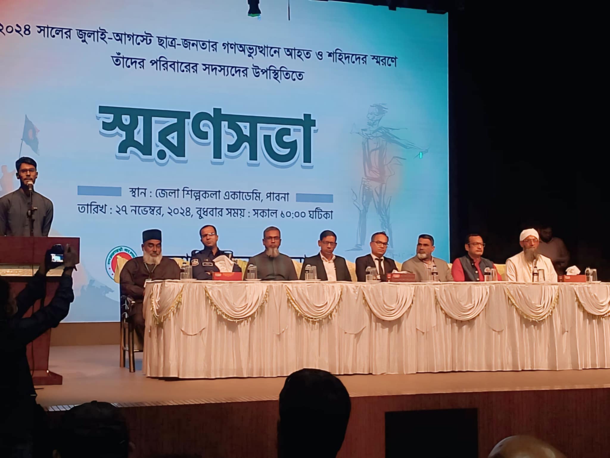 আজ ২৭ নভেম্বর (বুধবার) সকালে পাবনা শিল্পকলা মিলানায়তনে পাবনা জেলা প্রশাসকের আয়োজনে জুলাই-আগস্ট ছাত্র জনতার গণঅভ্যুত্থানে আহত ও নিহতদের স্মরণে স্মরণ সভা অনুষ্ঠিত হয়।