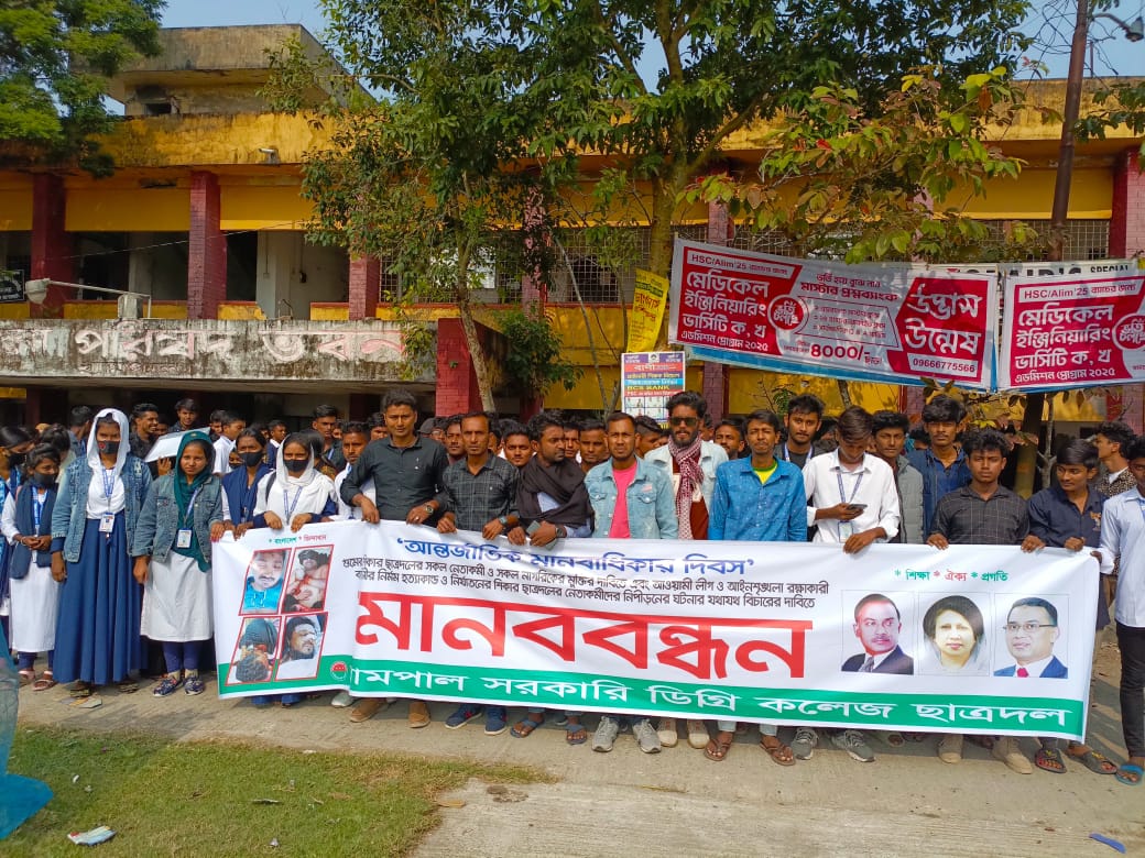 বাগেরহাট জেলার রামপাল উপজেলায় সরকারি রামপাল কলেজ ছাত্রদলের মানববন্ধন অনুষ্ঠিত হয় ছাত্রনেতা শেখ রফিকুল ইসলামের সভাপতিত্বে ও ছাত্রনেতা ইকরামুল সরাদারের সঞ্চালনায় আন্তর্জাতিক মানবাধিকার দিবস উপলক্ষে সকাল ১১ টায় মানববন্ধন অনুষ্ঠিত হয়।
