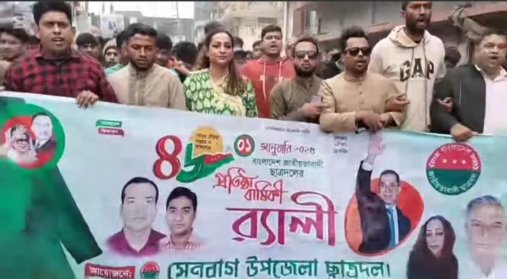 নোয়াখালীর সেনবাগে বাংলাদেশ জাতীয়তাবাদী ছাত্রদলের ৪৬তম প্রতিষ্ঠা বার্ষিকী উপলক্ষে র্যালী অনুষ্ঠিত হয়।