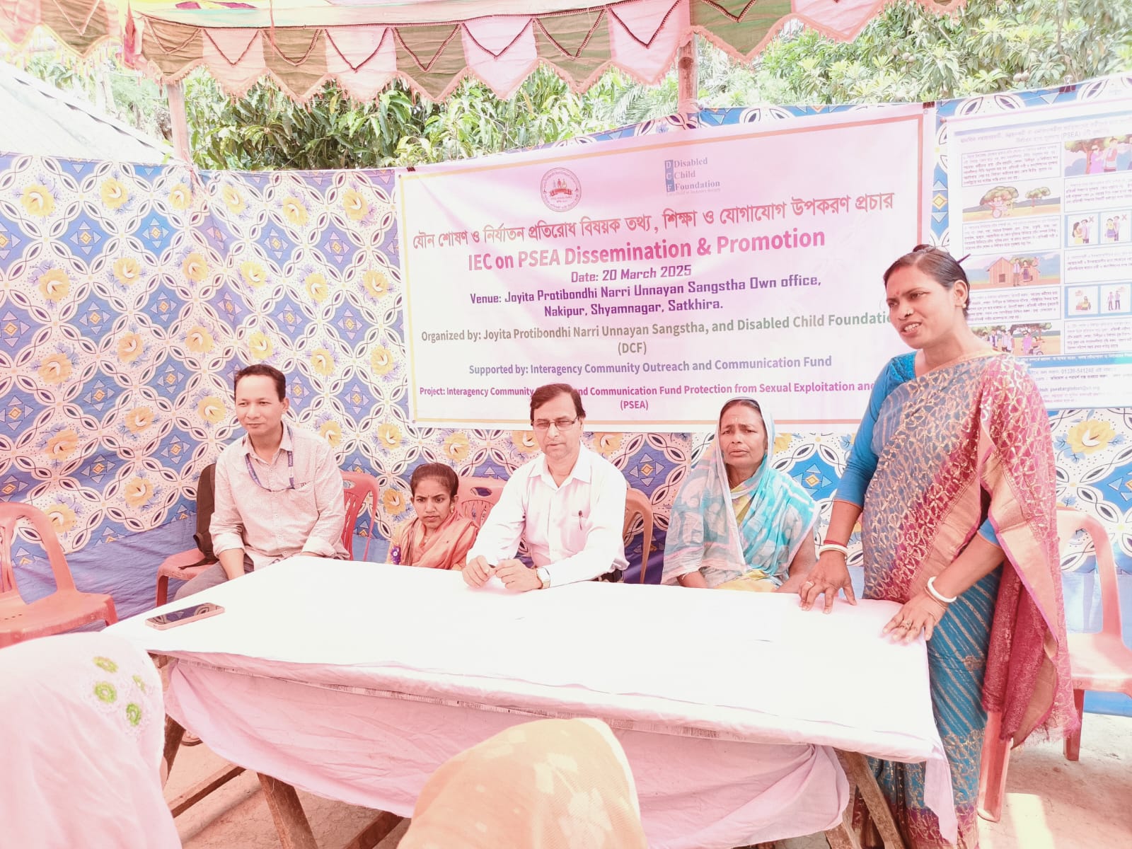 বাংলাদেশের সমাজ ব্যবস্থায় যৌন শোষণ এবং নির্যাতন একটি বড় চ্যালেঞ্জ। বিশেষ করে নারীরা, শিশুরা এবং প্রতিবন্ধী ব্যক্তিরা অধিক হুমকির মুখে থাকে। প্রান্তিক জনগোষ্ঠীর অধিকারের নিশ্চয়তা বিধানে সচেতনতা এবং তথ্যপ্রবাহ অত্যন্ত গুরুত্বপূর্ণ। এই প্রেক্ষাপটে জয়িতা প্রতিবন্ধী নারী উন্নয়ন সংস্থা (JPNUS) ও Disable Child Foundation (DCF) এর যৌথ উদ্যোগে এবং Interagency Community Outreach and Communication Fund এর অর্থায়নে আজ এটা প্রতিবন্ধী নারী উন্নয়ন সংস্থার নিজস্ব কার্যালয়ে "যৌন শোষণ ও নির্যাতন প্রতিরোধ বিষয়ক তথ্য, শিক্ষা ও যোগাযোগ প্রচার" শীর্ষক এক বিশেষ কর্মসূচির আয়োজন করা হয়। এই কর্মসূচির মূল লক্ষ্য ছিল সমাজে নির্যাতনের ধরন ও প্রভাব সম্পর্কে সচেতনতা সৃষ্টি, আইনি ও সামাজিক সহায়তার পথ নির্দেশনা, এবং স্থানীয় সম্প্রদায়ের ক্ষমতায়ন।