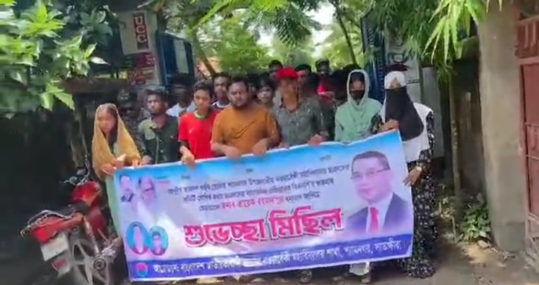 সাতক্ষীরা জেলার শ্যামনগর থানার অন্তর্গত ১০ নম্বর আটুলিয়া ইউনিয়নের নওয়াবেঁকী মহাবিদ্যালয় শাখার স্বঘোষিত ছাত্রদল সভাপতি আতিকুর রহমান আলিফ ও সাধারণ সম্পাদক হুসাইন হাসান তামিমের নেতৃত্বে সোমবার (২৩/০৬/২৫) সকাল ১০ টায় মহাবিদ্যালয় থেকে বাংলাদেশ জাতীয়তাবাদী ছাত্রদল নওয়াবেঁকী মহাবিদ্যালয় শাখার উদ্যোগে কেন্দ্রীয় ছাত্রদল ঘোষিত শ্যামনগর উপজেলাধীন নওয়াবেঁকী মহাবিদ্যালয় কমিটি ঘোষণা করায় ছাত্রদলের সাংগঠনিক অভিভাবক দেশনায়ক জনাব তারেক রহমান ও কেন্দ্রীয় ছাত্রদলের সভাপতি রাকিবুল ইসলাম রাকিব ও সাধারণ সম্পাদক নাসিরউদ্দীন নাসিরকে ধন্যবাদ জানিয়ে শুভেচ্ছা মিছিল অনুষ্ঠিত হয়।