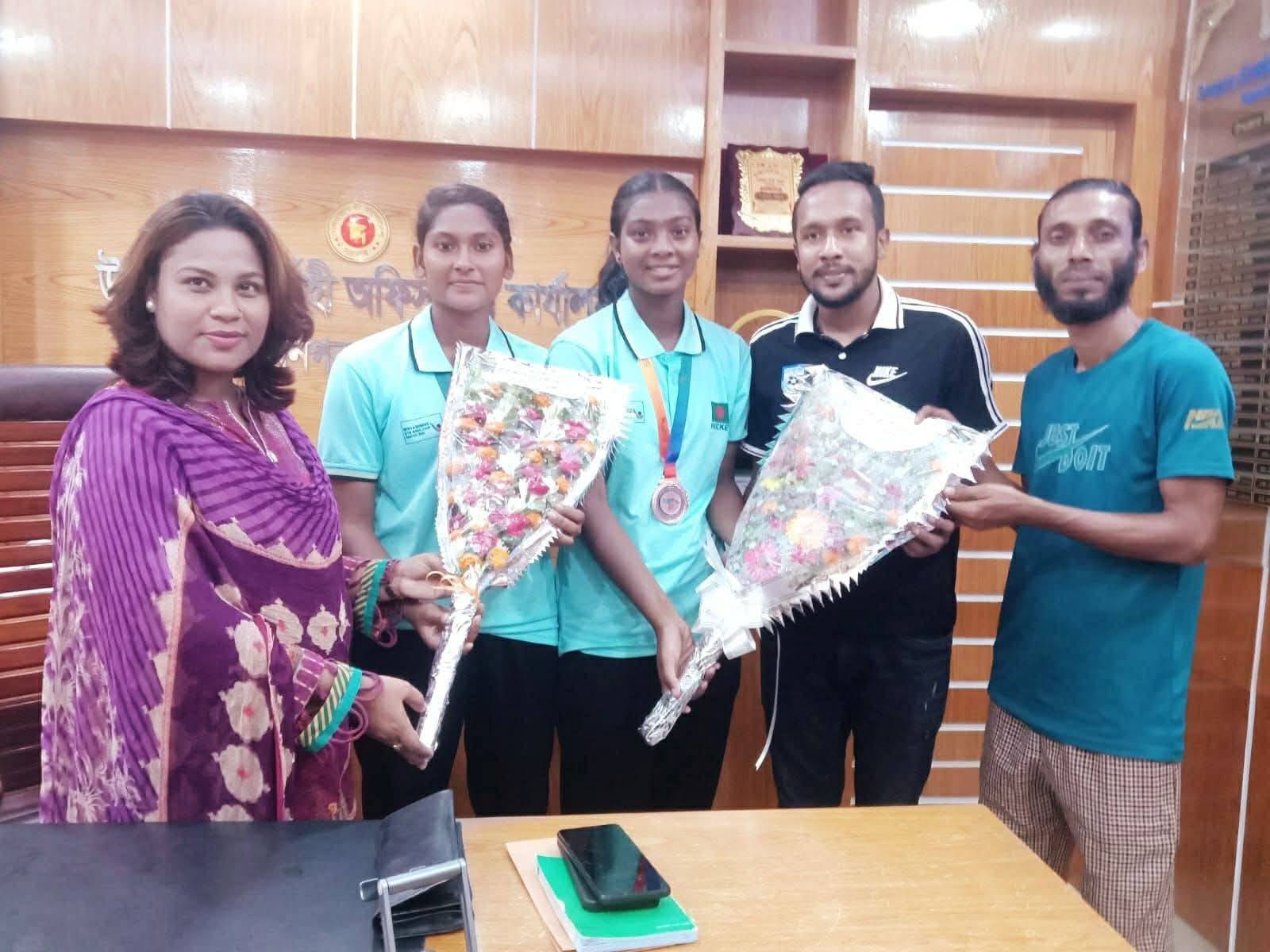 নিয়েই দেশের জন্য সাফল্য বয়ে এনেছে বাংলাদেশ নারী হকি দল। ১৩ জুলাই (রবিবার) তৃতীয়স্থান নির্ধারণী ম্যাচে কাজাখস্তানকে ৬-২ গোলে হারিয়ে ব্রোঞ্জ জিতেছে বাংলাদেশ। দলের অধিনায়ক ছিলেন শারিকা রিমন। এ খেলা উপলক্ষে শ্যামনগরের রেহানা ও ষষ্ঠী সহ বাংলাদেশ টিম কে আন্তরিক অভিনন্দন জানিয়েছেন শ্যামনগর উপজেলার সুযোগ্য নির্বাহী অফিসার মোছাঃ রনী খাতুন, শ্যামনগর উপজেলা রিপোর্টার্স ক্লাবের সভাপতি এস কে সিরাজ, সাধারন সম্পাদক মোঃ ইয়াছিন আরাফাত, সাংগঠনিক সম্পাদক ডাঃ জিয়াউর রহমান সহ সকল নেতৃবৃন্দ,