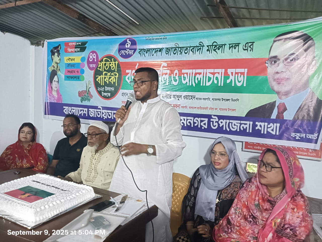 বাংলাদেশ জাতীয়তাবাদী মহিলা দলের ৪৭ তম প্রতিষ্ঠা বার্ষিক উদযাপন উপলক্ষে শ্যামনগর উপজেলা মহিলা দল নানা কর্মসূচির মাধ্যমে প্রতিষ্ঠা বার্ষিকী পালন করলো। এ সময় কেক কাটা আলোচনা সভা ও র্যালি সহ বিভিন্ন কার্যক্রম এর মাধ্যমে আরম্বরপূর্ণ অনুষ্ঠান উদযাপিত হয়। এ সময় অনুষ্ঠানে প্রধান অতিথি ছিলেন শ্যামনগর উপজেলা বিএনপি সাবেক সভাপতি আলহাজ্ব মাস্টার আব্দুল ওয়াহেদ। বিশেষ অতিথি হিসেবে উপস্থিত ছিলেন সাতক্ষীরা জেলা বিএনপি'র অন্যতম সদস্য এডভোকেট আশেক ইলাহি মুন্না, ্সাবেক ছাত্রনেতা আজিজুর রহমান আজীবর, যুবদলনেতা মজনু এলাহী, মাস্টার তাজুল ইসলাম, হাবিবুর রহমান হবি, মোতালেব হোসেন, আবুল কাশেম। আরো উপস্থিত ছিলেন মহিলা দলের সাধারণ সম্পাদক রহিমা আক্তার কল্পনা, জয়নুল বেগম, সোনিয়া পারভীন, নার্গিস হাবিব মিলি, মোস্তফা সহ ১২ টা ইউনিয়ন মহিলা দলের নেতৃবৃন্দ।সমগ্র অনুষ্ঠানের সভাপতিত্ব করেন শ্যামনগর উপজেলা মহিলা দলের সভানেত্রী, কেন্দ্রিয় মহিলা দলের অন্যতম সদস্য সাবেক ভাইচ চেয়ারম্যান নুরজাহান পারভিন ঝরনা।