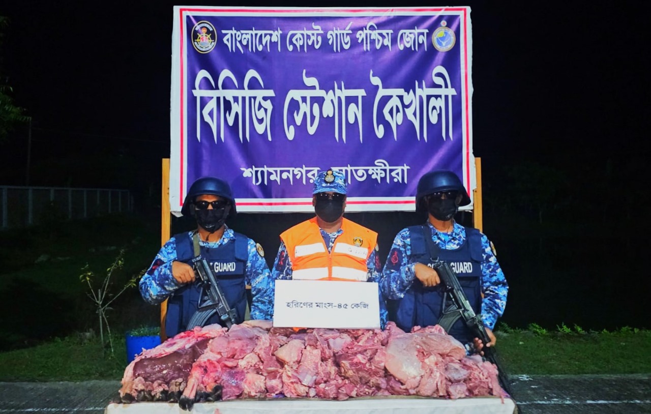 সাতক্ষীরার শ্যামনগরে ৪৫ কেজি হরিণের মাংস ও ১২ টি পা জব্দ করেছে কোস্ট গার্ড।
