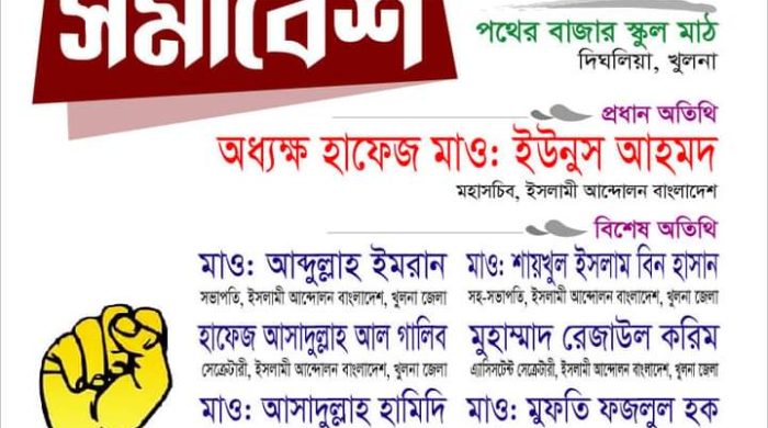 এম শাহরিয়ার তাজ,খুলনা প্রতিনিধি আগামীকাল শুক্রবার বিকেল তিনটায় দিঘলিয়ার পথের বাজার স্কুল মাঠে ইসলামী আন্দোলন বাংলাদেশ দিঘলিয়া উপজেলা শাখার উদ্যোগে গণসমাবেশ অনুষ্ঠিত হবে। দুর্নীতিবাজদের গ্রেপ্তার ও