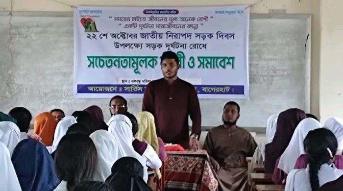 শেখ মহিউদ্দিন মোংলা (বাগেরহাট) প্রতিনিধি সার্ভিস বাংলাদেশ’র পক্ষ থেকে জাতীয় নিরাপদ সড়ক দিবস-২০২৪ উপলক্ষে মাসব্যাপী বিভিন্ন কর্মসূচীর অংশ হিসেবে আজ ০৩ রা অক্টোবর রোজ বৃহস্পতিবার, সকাল ১১.৩০