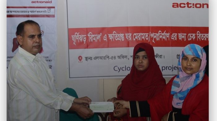 স্টাফ রিপোর্টার আব্দুল্লাহ আল মামুন শ্যামনগর উপজেলায় বৃহস্পতিবার একশনএইড বাংলাদেশ কর্তৃক নিজস্ব অফিসে রিমেলে ক্ষতিগ্রস্ত ঘর মেরামত ও পুননির্মাণের জন্য ৫০টি পরিবারের মধ্যে ৮লক্ষ ১৫হাজার টাকার চেক বিতরণ করা হয়।