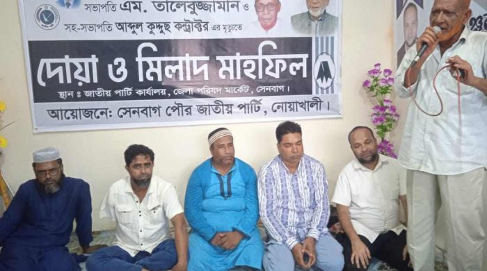 মোহাম্মদ আবু নাছের, ব্যুরো চীফ নোয়াখালী : শনিবার (১৪ সেপ্টেম্বর ) দুপুরে নোয়াখালীর সেনবাগ পৌরসভা সদরের ভোজন বিলাসে অনুষ্ঠিত সভায় মো: মাসুদুর রহমান এর সভাপতিত্বে ও আলা