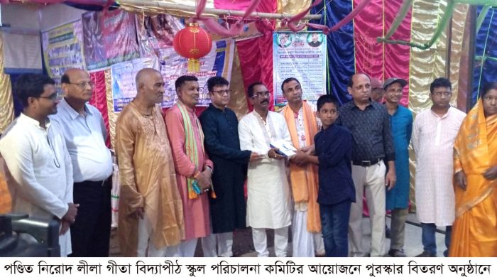 রিপোর্ট: স ম জিয়াউর রহমান পণ্ডিত নিরোদ লীলা গীতা বিদ্যাপীঠ স্কুল পরিচালনা কমিটির উদ্যোগে শারদীয় দুর্গোৎসবের বার্ষিক পুরস্কার বিতরণ অনুষ্ঠান দুর্গোৎসবের মহাসপ্তমী তিথিতে অনুষ্ঠিত হয়েছে। অনুষ্ঠানে সভাপতিত্ব করেন পণ্ডিত read more