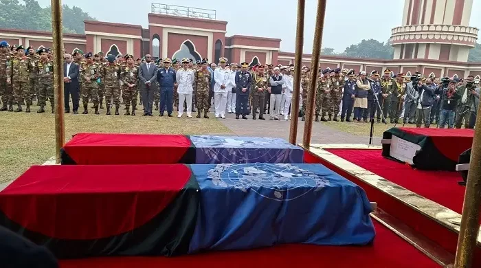 সুদানে জাতিসংঘ শান্তিরক্ষা মিশনে সন্ত্রাসী হামলায় নিহত ৬ বাংলাদেশি শান্তিরক্ষীর জানাজা সম্পন্ন হয়েছে। রোববার (২১ ডিসেম্বর) সকাল সাড়ে ৯টার দিকে ঢাকা সেনানিবাসের কেন্দ্রীয় সেনা মসজিদ প্রাঙ্গণে তাদের নামাজে জানাজা অনুষ্ঠিত