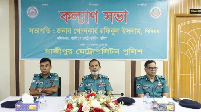 সুরুজ্জামান রাসেল গাজীপুর প্রতিনিধি: গাজীপুর মেট্রোপলিটন পুলিশ সদর দপ্তরে ০৭ সেপ্টেম্বর ২০২৪ শনিবার আগস্ট-২০২৪ এর কল্যাণ সভা অনুষ্ঠিত হয়। উক্ত সভায় সভাপতিত্ব করেন নবাগত পুলিশ কমিশনার জনাব খোন্দকার রফিকুল