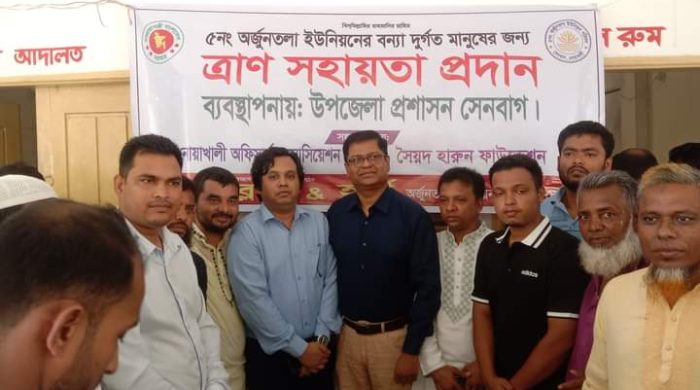 মোহাম্মদ আবু নাছের, ব্যুরো চীফ নোয়াখালী : নোয়াখালীর সেনবাগ উপজেলা প্রশাসনের ব্যবস্থাপনায় ৫নং অর্জুনতলা ইউনিয়ন পরিষদ কার্যালয়ে ত্রাণ সামগ্রী বিতরণ করা হয়। বৃহস্পতিবার ( ৫ সেপ্টেম্বার) সকাল ১০ টায়
