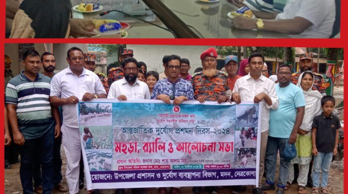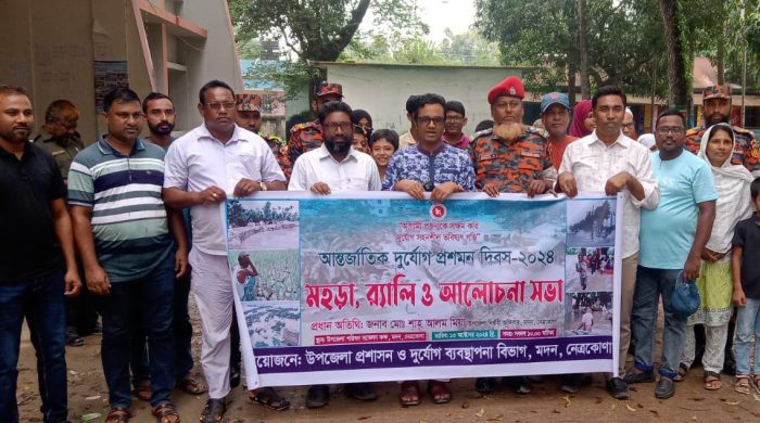 নেত্রকোণা প্রতিনিধিঃ ” আগামী প্রজন্মকে সক্ষম করি দুর্যোগ সহনশীল ভবিষ্যৎ গড়ি’ এই স্লোগান কে সামনে রেখে নেত্রকোণা মদন উপজেলা চত্বর হতে আন্তর্জাতিক দুর্যোগ প্রমোশন দিবস উপলক্ষে শোভাযাত্রা ও আলোচনা