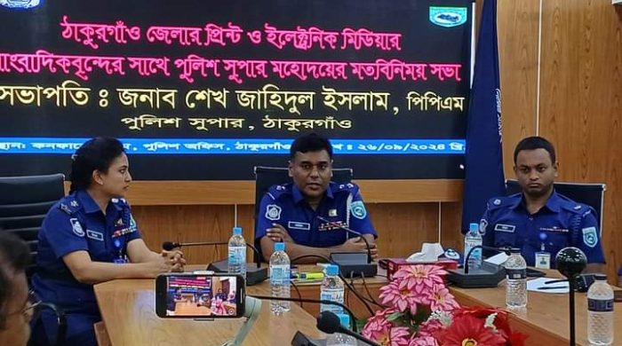 মোঃ মজিবর রহমান শেখ ঠাকুরগাঁও জেলা প্রতিনিধি,, নবাগত ঠাকুরগাঁও জেলা পুলিশ সুপার শেখ জাহিদুল ইসলামের সাথে সাংবাদিকদের মতবিনিময় সভা অনুষ্ঠিত হয়েছে। ২৬ সেপ্টেম্বর বৃহস্পতিবার বিকাল ৫ টায়