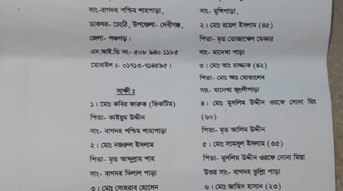 ঠাকুরগাঁও জেলা প্রতিনিধি : পঞ্চগড় জেলার দেবীগঞ্জ উপজেলার বাগদহ পশ্চিমপাড়ায় চাঁদাবাজির অভিযোগে মামলা দায়ের করা হয় । গত ১৫ অক্টোবর পঞ্চগড় বিজ্ঞ আমলী আদালত-২, দেবীপগঞ্জ পঞ্চগড়ে এ
